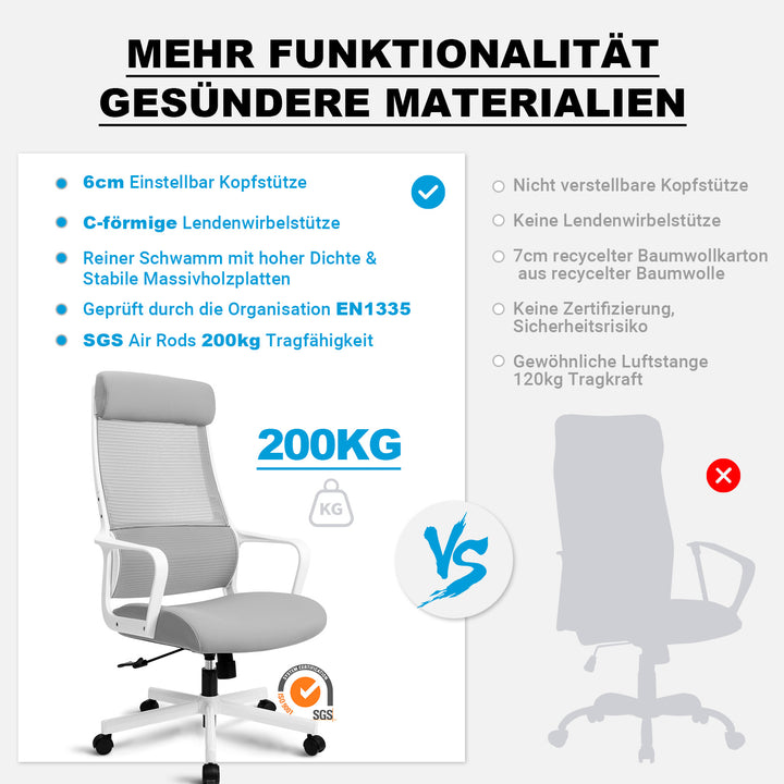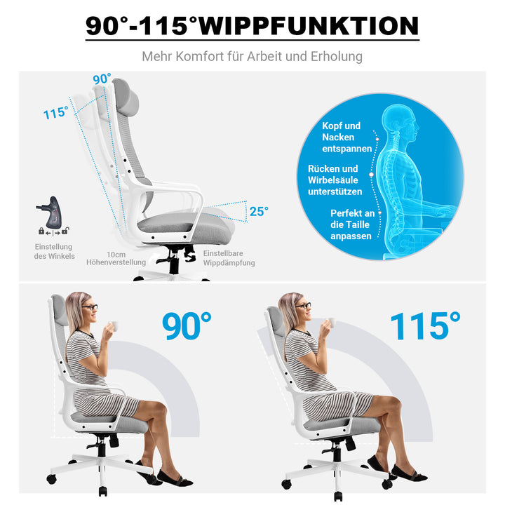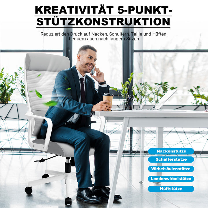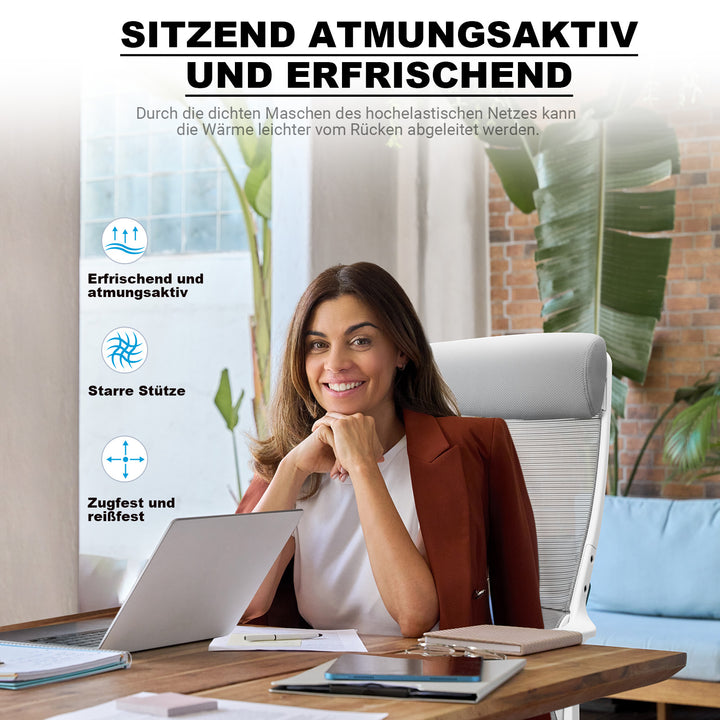 - 【Atmungsaktives & weiches Design】Wir haben den Schaumstoffsitz des Bürostuhls verbessert, Sitzkissen dick 10cm, der weicher und unterstützender ist, passt es sich der Krümmung der Hüften an. Die Rückenlehne besteht aus einem Netz mit starker Zugfestigkeit, das unter Berücksichtigung des Komforts und Ihnen ein dauerhaft erfrischendes Erlebnis bietet eilen.
