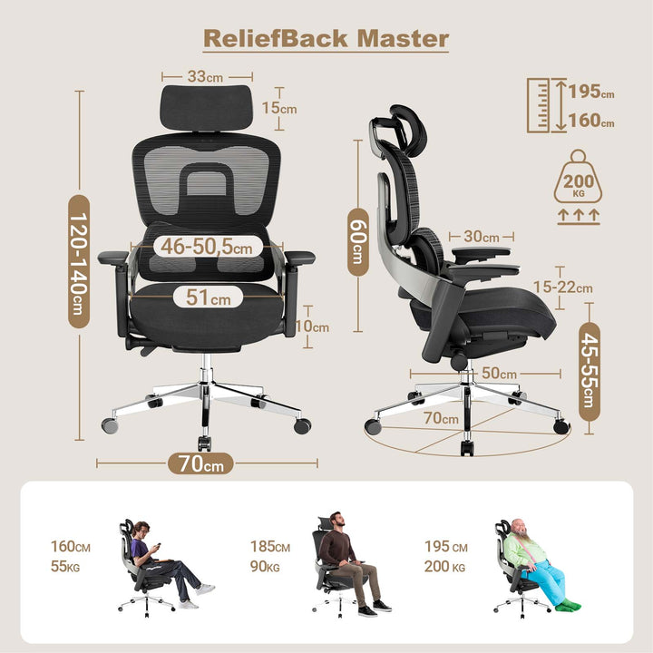 MELOKEA ReliefBack Master Bürostuhl 200 kg Ergonomischer Testsieger