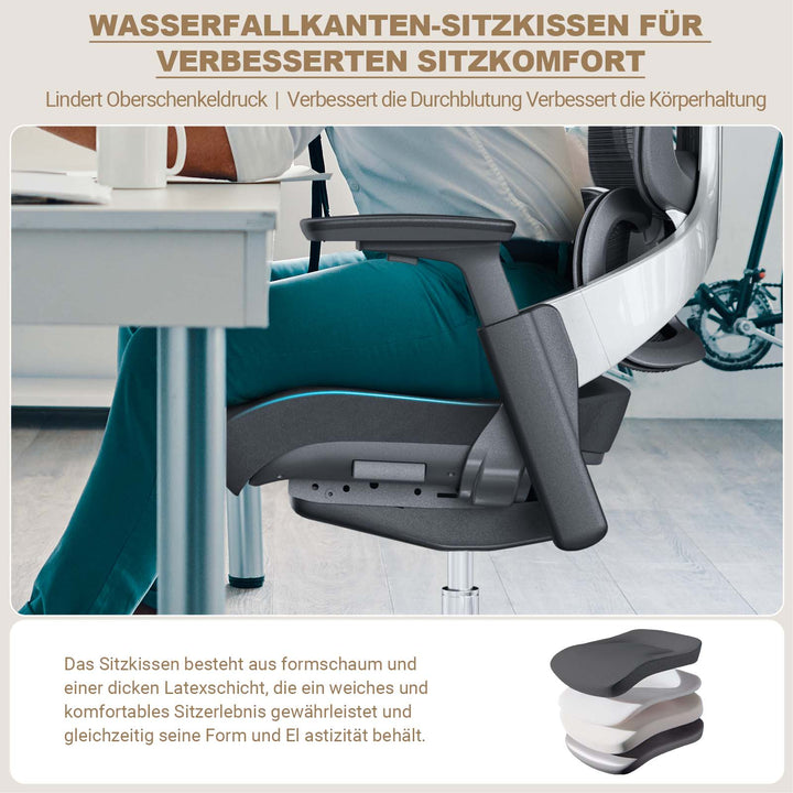 Erleben Sie unseren speziell entwickelten ergonomischen Bürostuhl, perfekt abgestimmt auf europäische Körpermaße.
