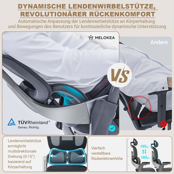 - 【𝐕𝐞𝐫𝐛𝐞𝐬𝐬𝐞𝐫𝐭𝐞 𝐝𝐲𝐧𝐚𝐦𝐢𝐬𝐜𝐡𝐞 𝐋𝐞𝐧𝐝𝐞𝐧𝐰𝐢𝐫𝐛𝐞𝐥𝐬𝐭ü𝐭𝐳𝐞】Im Vergleich zur herkömmlichen integrierten Lendenwirbelstütze bietet unsere innovative dynamische Lendenwirbelstütze flexiblere Eigenschaften. Sie passt sich dynamisch nach oben, unten, links und rechts in einem Bereich von 0-15° an, um den Bewegungen Ihres unteren Rückens zu folgen. Unabhängig von Ihrer Sitzhaltung oder Körperdrehungen bietet sie konstante Unterstützung für Ihren unteren Rücken und schützt diesen kontinuierlich.