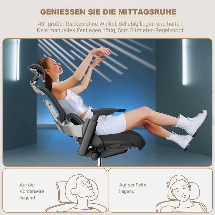 - 【𝐅𝐨𝐫𝐭𝐠𝐞𝐬𝐜𝐡𝐫𝐢𝐭𝐭𝐞𝐧𝐞 𝐒𝐲𝐧𝐜𝐡𝐫𝐨𝐧𝐢𝐬𝐚𝐭𝐢𝐨𝐧𝐬𝐭𝐞𝐜𝐡𝐧𝐨𝐥𝐨𝐠𝐢𝐞】Viele Bürostühle auf dem Markt bieten beim Zurücklehnen oft keine ausreichende Unterstützung für den unteren Rücken, was letztendlich zu Unannehmlichkeiten führt. Jedoch durch unsere fortschrittliche Sitz- und Rückenlehnen-Synchronisationstechnologie gleitet der Sitz synchron nach vorne, wenn sich der Stuhl zurücklehnt. Dadurch bleibt die Lendenwirbelstütze nahtlos mit dem Rücken in Kontakt und entlastet den Druck auf die Lendenwirbelsäule.
