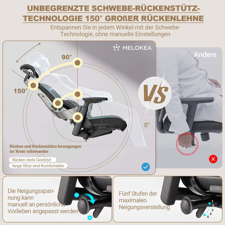 - 【𝐙𝐮𝐟𝐫𝐢𝐞𝐝𝐞𝐧𝐬𝐭𝐞𝐥𝐥𝐞𝐧𝐝𝐞 𝐊𝐮𝐧𝐝𝐞𝐧𝐛𝐞𝐭𝐫𝐞𝐮𝐮𝐧𝐠】Melokea ist eine ergonomische Stuhlmarke, die sich auf europäische Körpertypen konzentriert. Wir entwickeln Stühle, die den europäischen Standards für Heim- und Bürostühle EN12520 und EN1335 entsprechen. Jeder Stuhl wird mit einer leicht verständlichen Montageanleitung und einem Anleitungsvideo geliefert. Wir bieten einen 5-jährigen Nachverkaufsservice, der über dem Branchenstandard liegt. Sollte es bei Ihrem Produkt zu einem Problem kommen, bieten wir einen kostenlosen Austausch defekter Zubehörteile an. Bei Fragen stehen wir Ihnen jederzeit zur Verfügung und finden garantiert eine zufriedenstellende Lösung.