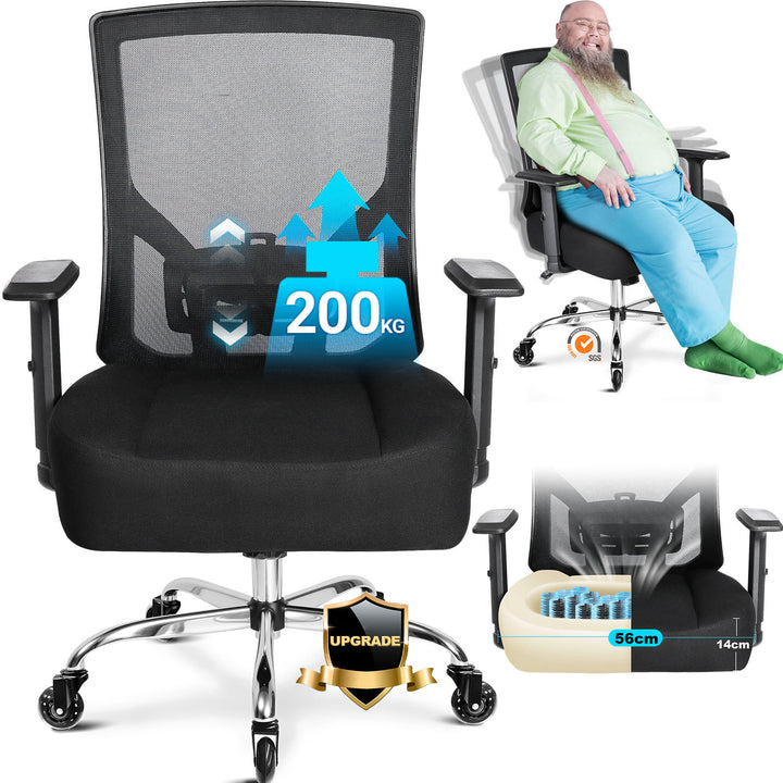 - ✅【Breiter Sitz für mehr Freiheit – jetzt 56 cm!】 Unser Bürostuhl wurde für noch mehr Komfort optimiert: Mit einer extra breiten Sitzfläche von 56 cm und einer Belastbarkeit von 200 kg genießen Sie maximale Bewegungsfreiheit! Egal welche Körpergröße oder Statur Sie haben, dank SGS-zertifiziertem Gaslift, robustem Metallfuß (bis zu 1136 kg belastbar) und einem gepolsterten Federsitzkissen sitzen Sie immer sicher und bequem. Der perfekte ergonomische Bürostuhl für jede Körperform!