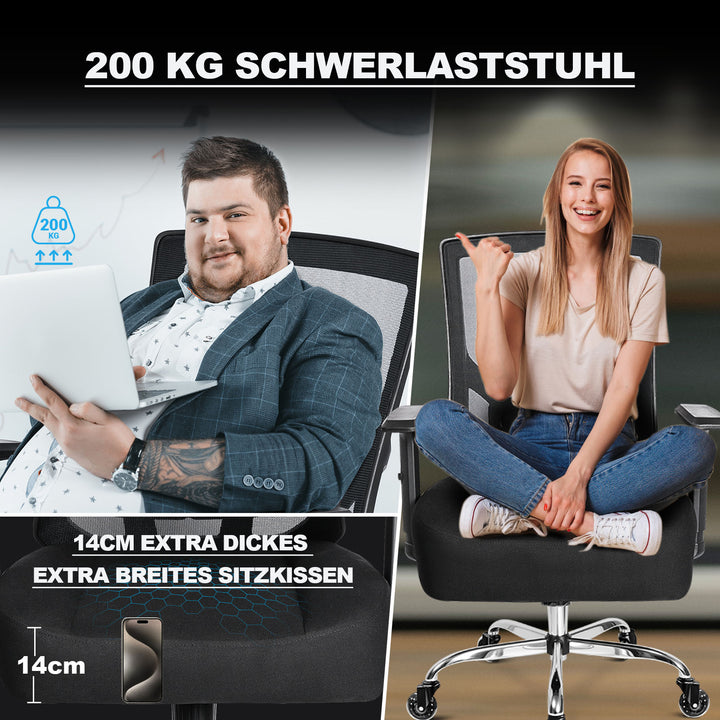 MELOKEA Bürostuhl 200KG XXL mit Extra Breites Federkissen, Ergonomischer Bürostuhl mit Gummirollen